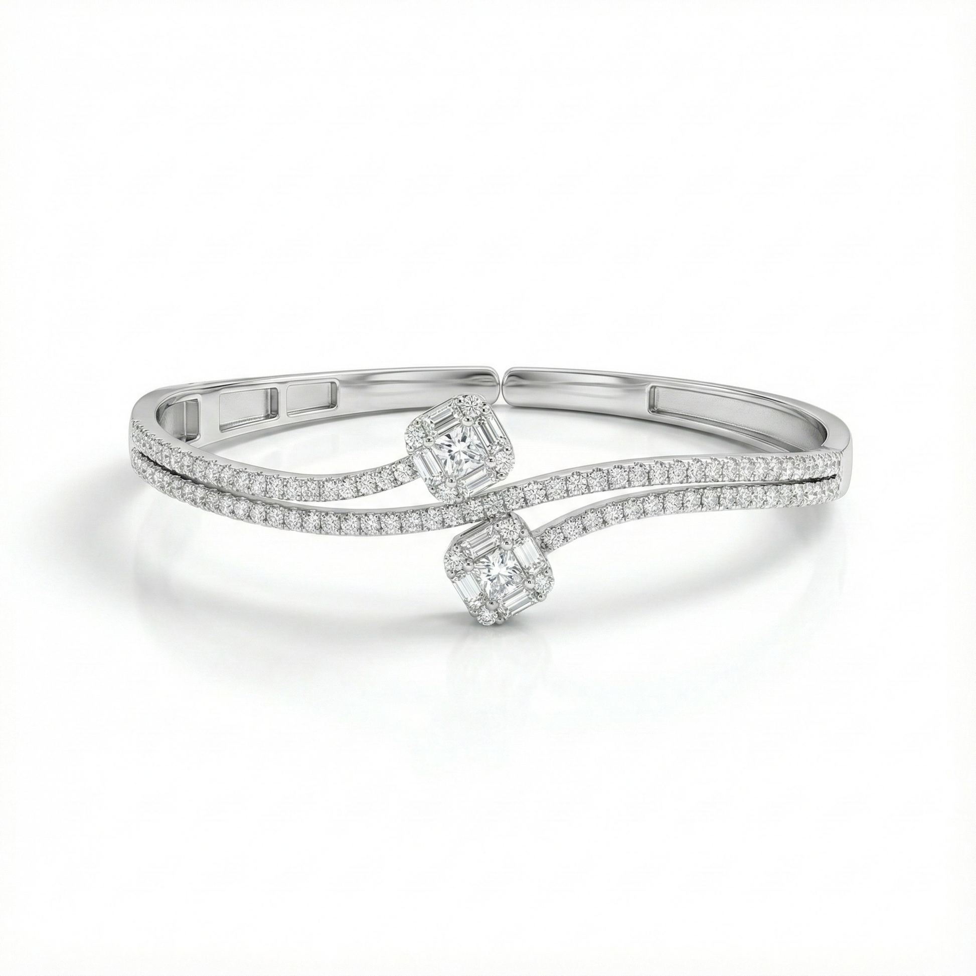 925 Silver Twin Curve Baguette Diamond-Style Fixed Bangle for Women kondasoft.product.next_product