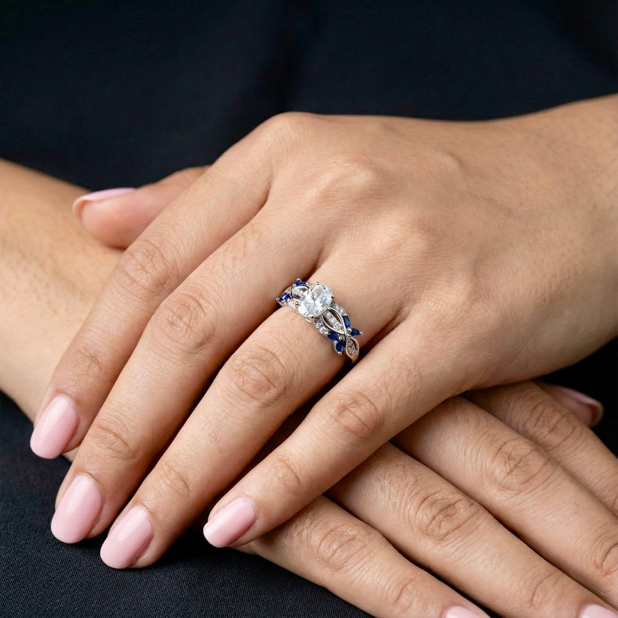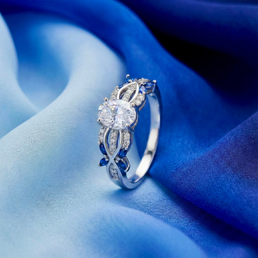 Crafted in solid 925 sterling silver, this ring features a beautiful leaf-inspired design with sparkling CZ stones and deep blue sapphire-tone accents. The center solitaire adds a brilliant shine, giving a premium high-end look. Perfect for women who prefer unique and classy rings, this design blends modern style with a hint of royal elegance. Ideal for daily wear, parties, and gifting.