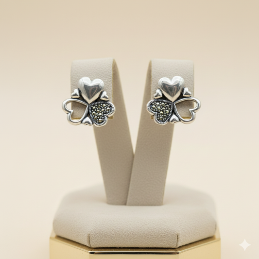 • Marcasite Clover Heart Studs | Made With Pure 925 Silver