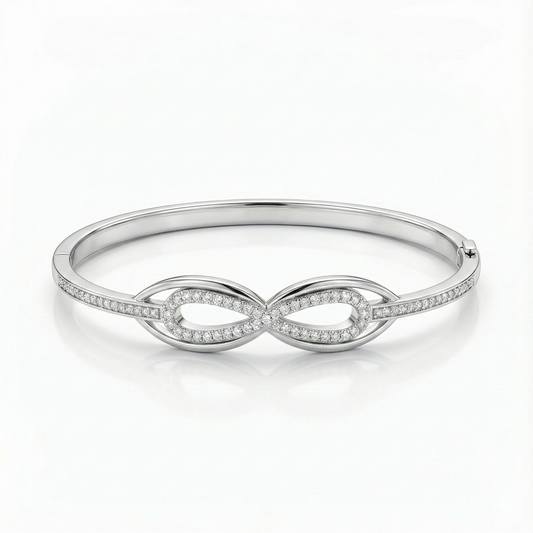 925 Silver Infinity Diamond-Style Fixed Bangle for Women