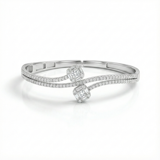 925 Silver Twin Asscher Diamond Adjustable Cuff Bracelet