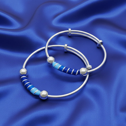 Blue Swirl Adjustable Kids Kada Set (13.9g) - 92.5 Silver