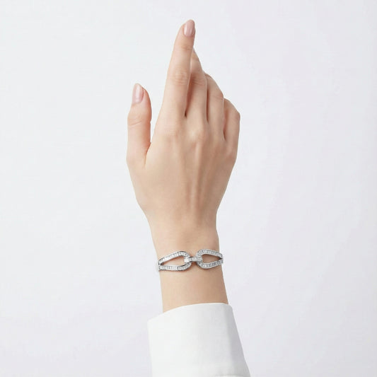 • 925 Silver Snake-Style Adjustable Baguette Diamond Bangle