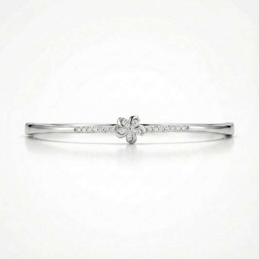 • 925 Silver Floral Diamond Accent Closed Bangle for Women