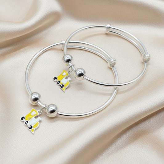 Yellow Train Adjustable Kids Kada Set (13.9g) - 92.5 Silver