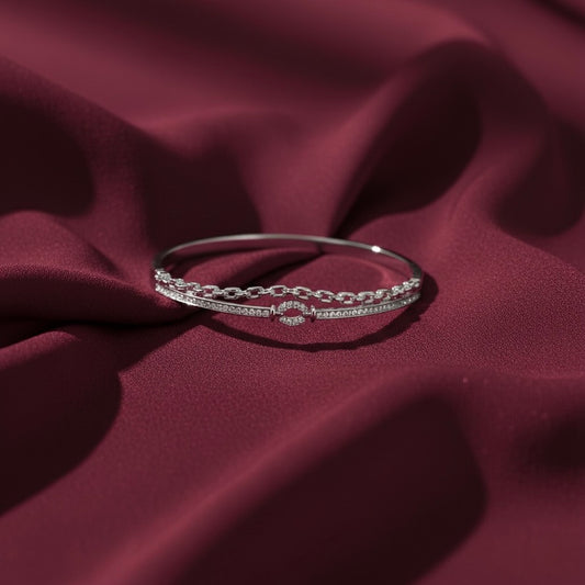 925 Silver Heart Harmony Bracelet with Sparkling Solitaire Centerpiece