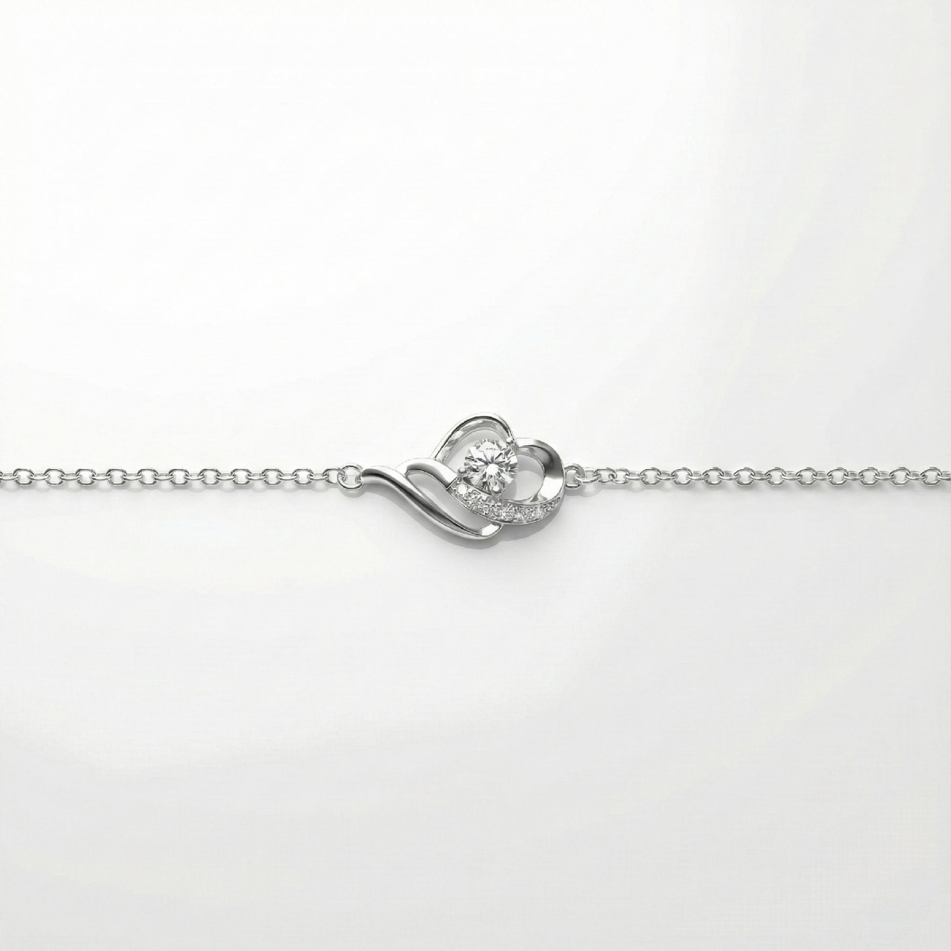 This elegant 925 silver heart bracelet features a beautifully sculpted flowing design that wraps around a brilliant solitaire stone, creating a perfect blend of romance and minimal luxury. Crafted in pure 925 sterling silver, the bracelet offers a radiant shine and long-lasting durability, making it ideal for everyday wear or gifting. Its adjustable chain ensures a comfortable fit for all wrist sizes, while the delicate detailing adds a refined, high-end touch. A timeless piece that enhances any look with effortless sophistication.